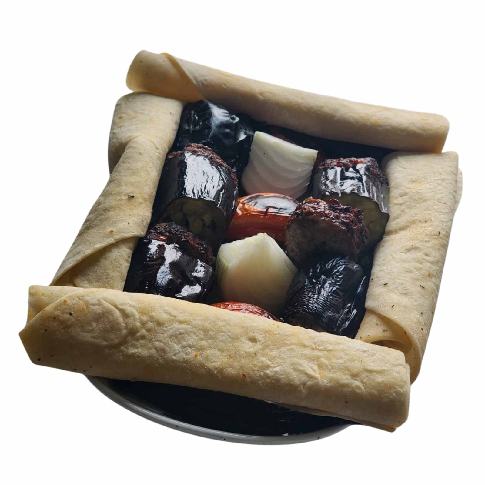 160 gram kebab,patlıacan,Soğan,Maydonuz,Domates,sumak,zengin,Özel Soslu Ekmek